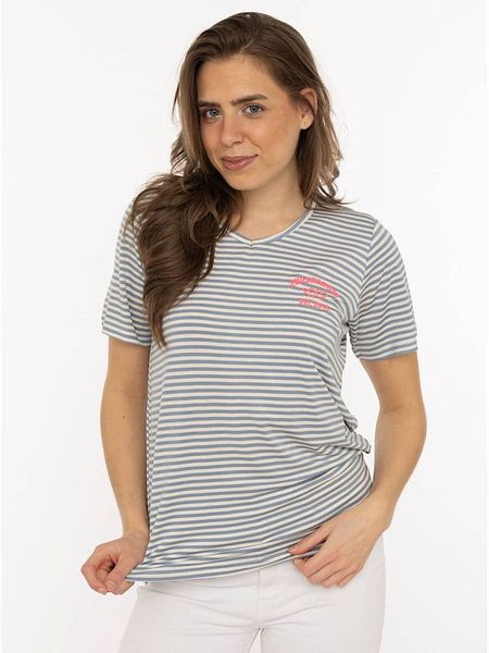 – czysta wiskoza- dekolt: V- krój: prosty- detale: haft z logo- wzór: paski