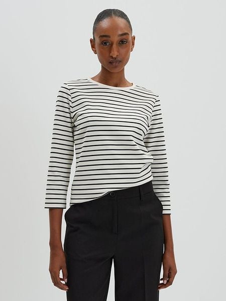 – dekolt: okrągły- krój: prosty- wzór: paski
