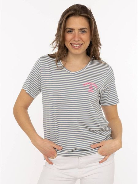 – czysta wiskoza- dekolt: V- krój: prosty- detale: haft z logo- wzór: paski