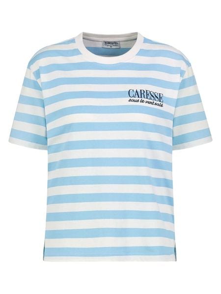 – dekolt: okrągły- nadruk: w formie napisu- krój: prosty- wzór: paski