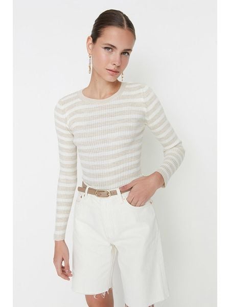 – dekolt: okrągły- wzór splotu: ścisły- krój: wąski- wzór: paski