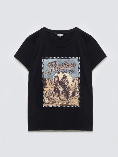 Czarny T-shirt o regularnym fasonie to propozycja łącząca rockowy sznyt z biżuteryjnym wykończeniem. Centralną część modelu zajmuje wyrazisty nadruk, którego urok podkreślają lśniące perełki. Taka dekoracja przyciąga wzrok i eliminuje potrzebę zakładania dodatkowej biżuterii przy dekolcie. Produkt sygnowany przez BIG STAR wyróżnia się dbałością o szczegóły oraz trwałością aplikacji, która zachowuje swój blask po praniu. […]