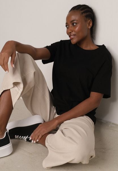 Czarny T-shirt z Bawełny Typu Oversize Nedika