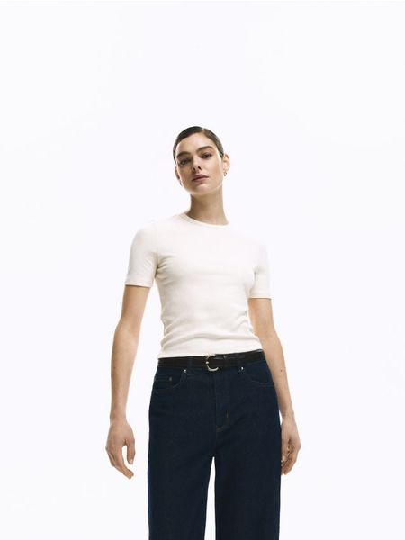 Prążkowany t-shirt – złamana biel