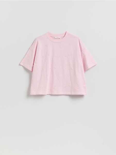 T-shirt z haftem – pastelowy róż
