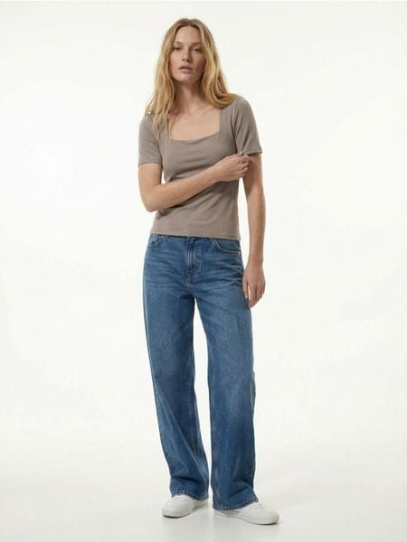 Sinsay – Koszulka z dekoltem karo – beżowy –