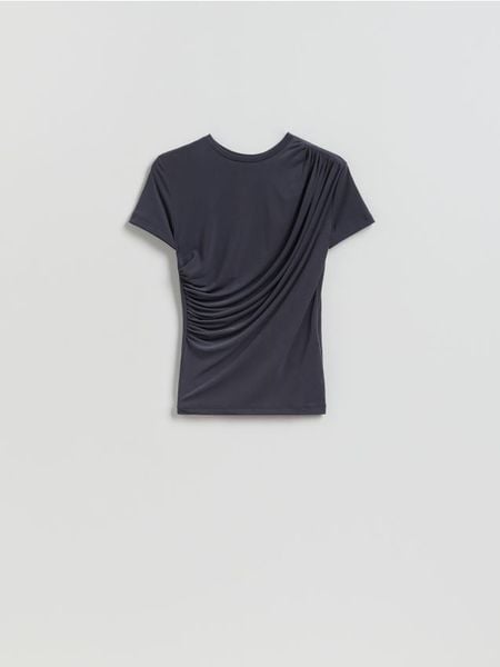 T-shirt z ozdobnym marszczeniem – ciemnoszary