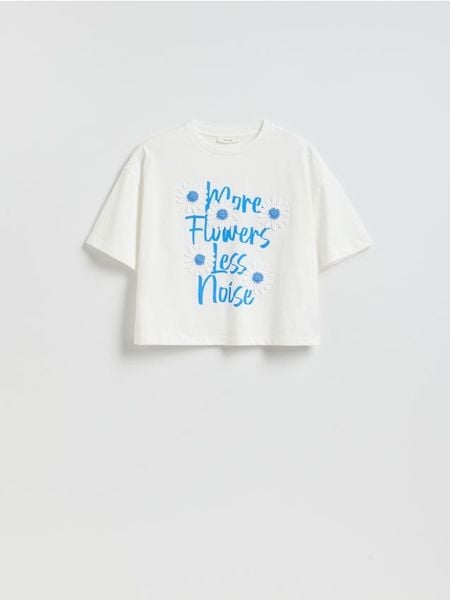 Bawełniany t-shirt z aplikacją – biały