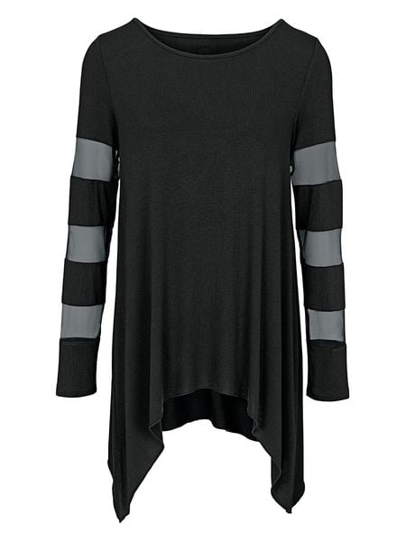 – dekolt: okrągły- dolny brzeg: asymetryczny- siateczkowe wstawki: tak – krój: luźny- look: jednokolorowy