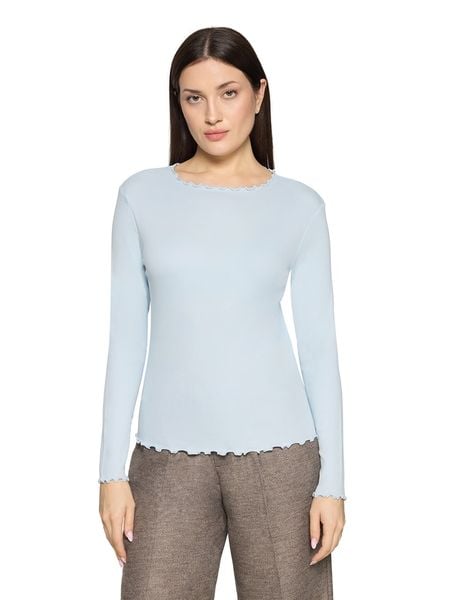 – dekolt: okrągły- zrolowany brzeg: dolny, zakończenia rękawów, dekolt- krój: wąski- look: jednokolorowy