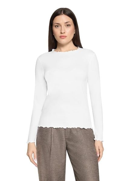 – dekolt: okrągły- zrolowany brzeg: dolny, zakończenia rękawów, dekolt- krój: wąski- look: jednokolorowy