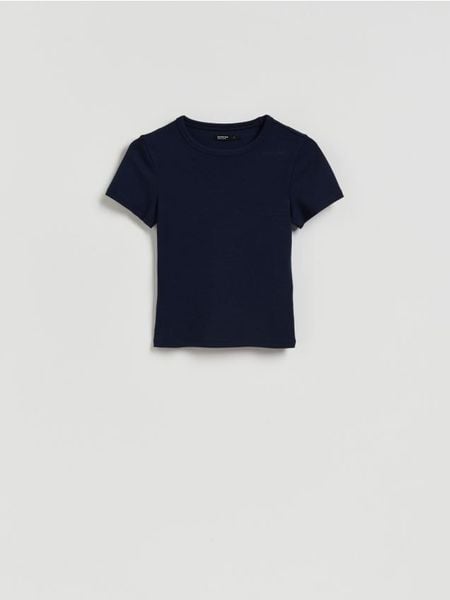 T-shirt o dopasowanym kroju, wykonany z dzianiny z bawełną oraz modalem.
