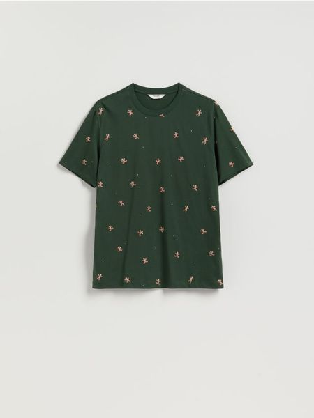 T-shirt regular ze świątecznym motywem – ciemnozielony