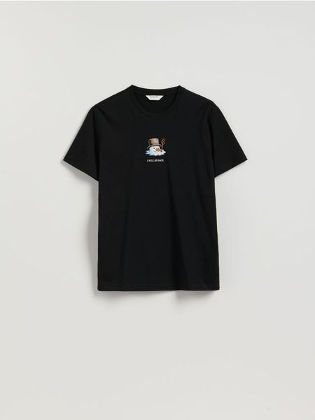 T-shirt regular ze świątecznym nadrukiem – czarny