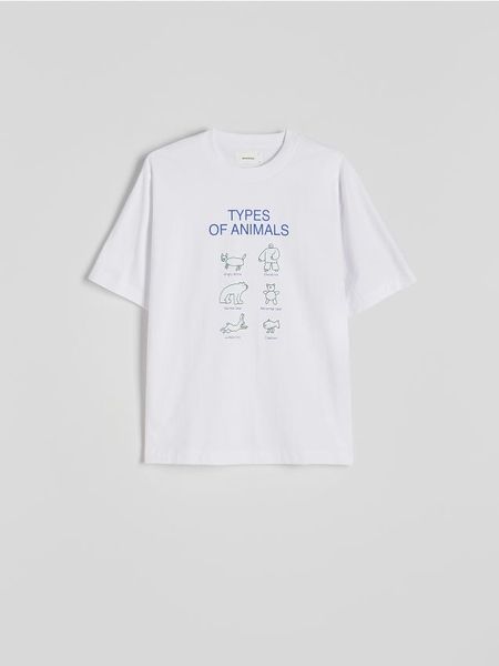 T-shirt o luźnym kroju, wykonany z bawełnianej dzianiny.