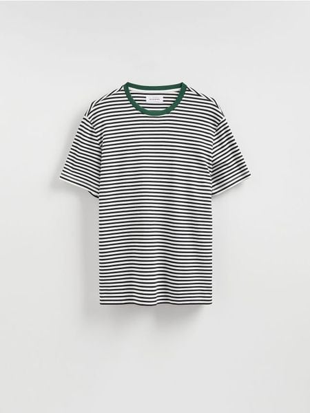T-shirt o regularnym kroju, wykonany z grubej, bawełnianej dzianiny.