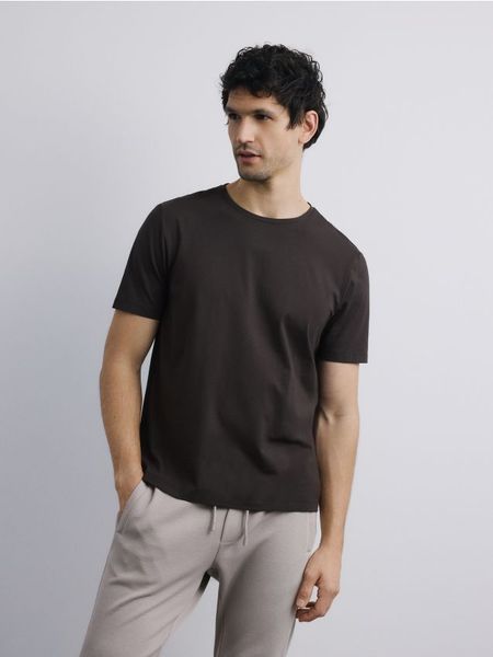 T-shirt regular z merceryzowaną bawełną – ciemnobrązowy