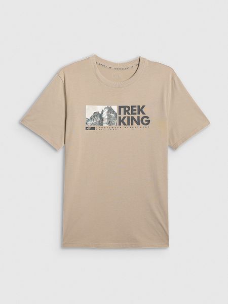 4F T-shirt regular z nadrukiem męski – beżowy XXL
