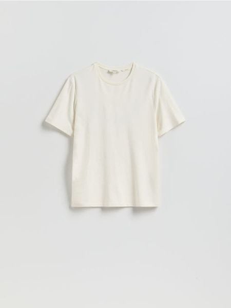 T-shirt o regularnym kroju, wykonany z dzianiny z włóknem bambusowym.