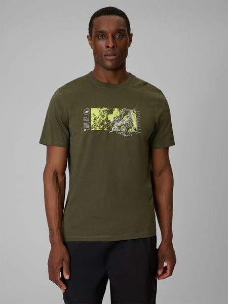 4F T-shirt regular z nadrukiem męski – khaki S