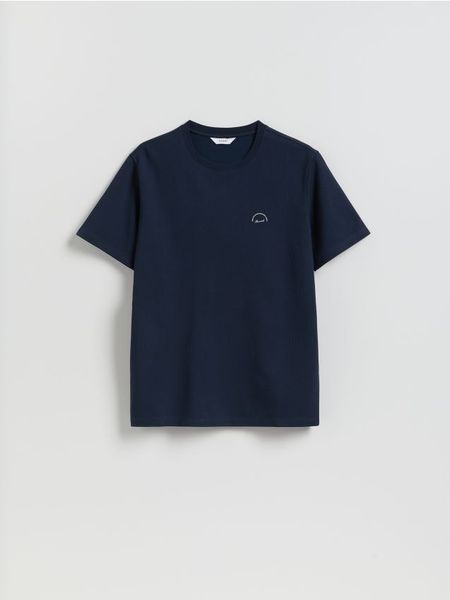 Strukturalny t-shirt regular fit – granatowy