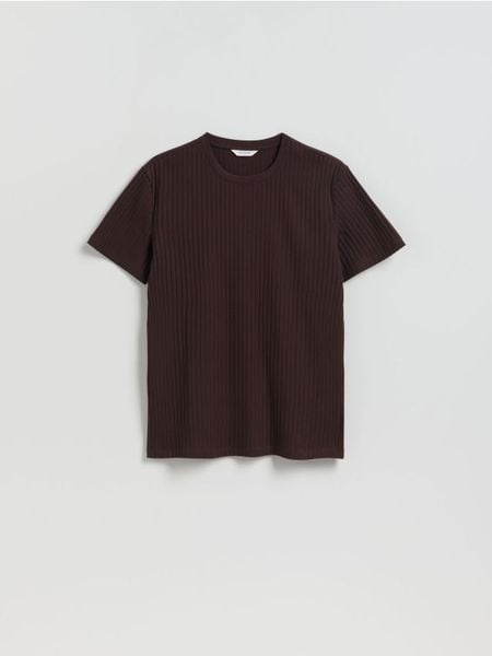 T-shirt regular w prążek – ciemnobrązowy
