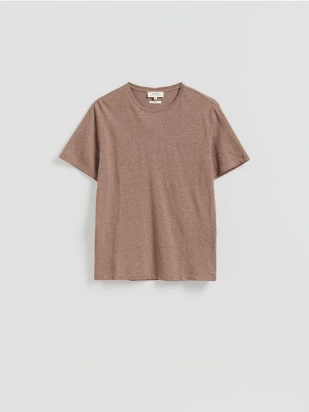 T-shirt o regularnym kroju, wykonany z dzianiny z dodatkiem lnu.