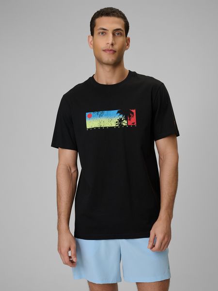 4F T-shirt regular z nadrukiem męski – czarny M