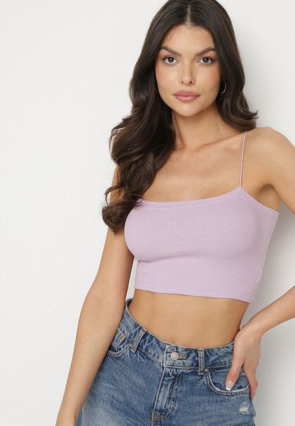 Jasnofioletowy Bawełniany Top na Ramiączkach z Prążkowanej Tkaniny Lunareia