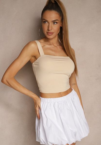 Jasnobeżowy Gładki Top z Wiskozą na Ramiączkach Lirenele