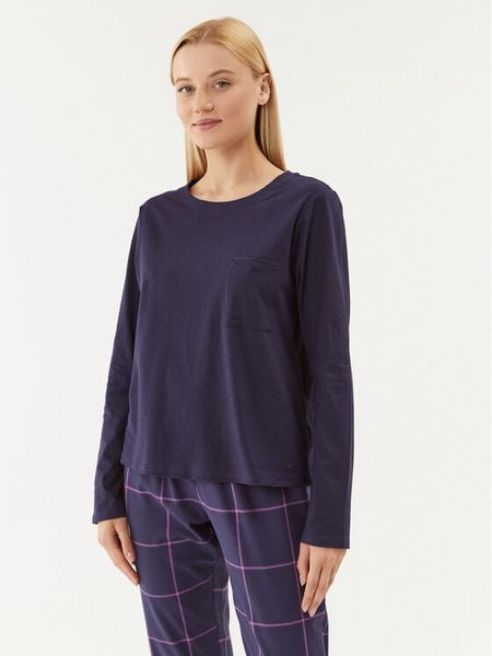Triumph Koszulka piżamowa Mix & Match LSL Top Chest Pocket 03 10216519 Granatowy Regular Fit