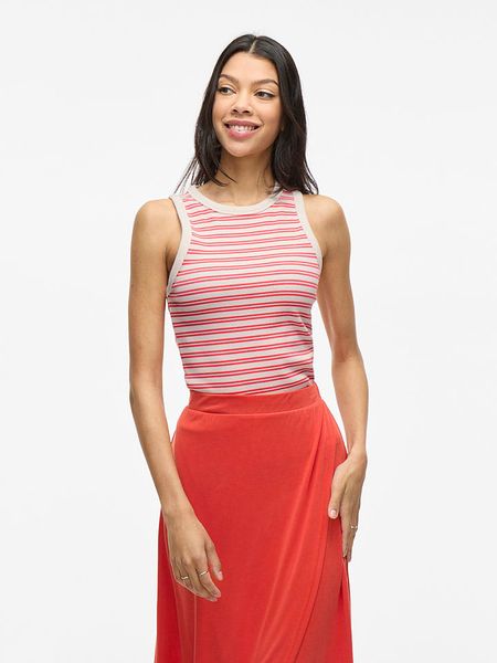 – z dodatkiem poliestru pochodzącego z recyklingu- z bawełny organicznej- ramiączka: szerokie- dekolt: okrągły- krój: wąski- wzór: paski