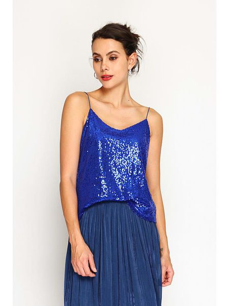 – ramiączka: wąskie- dekolt: V- detale: cekiny- krój: prosty- look: jednokolorowy, warstwyWskazówka: Na metkach odzieży tej marki znajdują się rozmiary francuskie. Rozmiarówka została przez nas przeliczona. Podane do wyboru warianty rozmiarów odpowiadają standardowym europejskim rozmiarom konfekcji. Prosimy zapoznać się z zamieszczonym objaśnieniem rozmiarów.