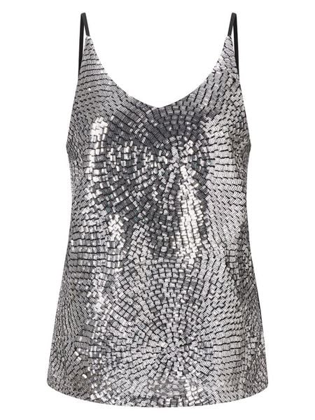 – ramiączka: regulowane- dekolt: V- detale: cekiny- krój: prosty- look: jednokolorowy