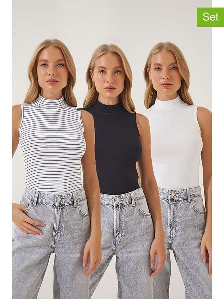 Happiness Istanbul Topy (3 szt.) w kolorze czarno-białym rozmiar: S/M