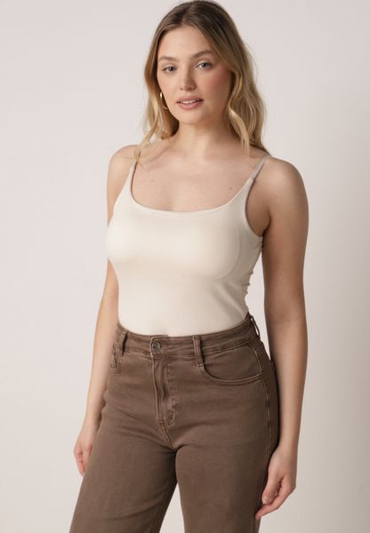 Beżowy Wiskozowy Top z Podwójnymi Ramiączkami Hendrea