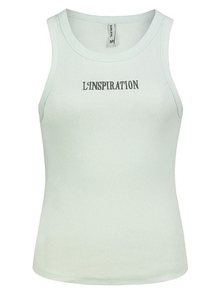 – ramiączka: szerokie- dekolt: okrągły- krój: prosty- look: jednokolorowy- nadruk: w formie napisu