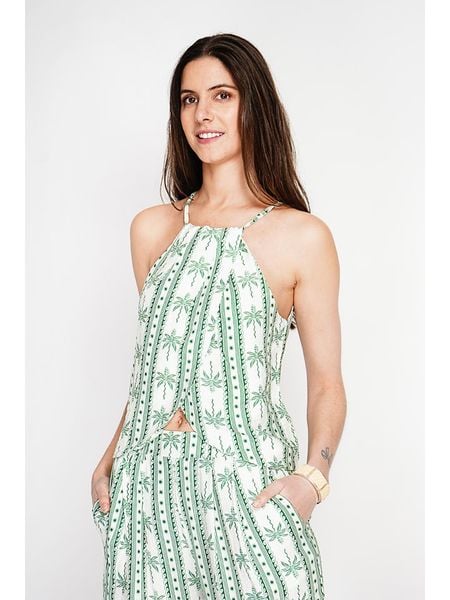 – z dodatkiem lnu- ramiączka: na szyję- zapięcie: wiązanie na plecach- dolny brzeg: asymetryczny- krój: prosty- wzór: na całości