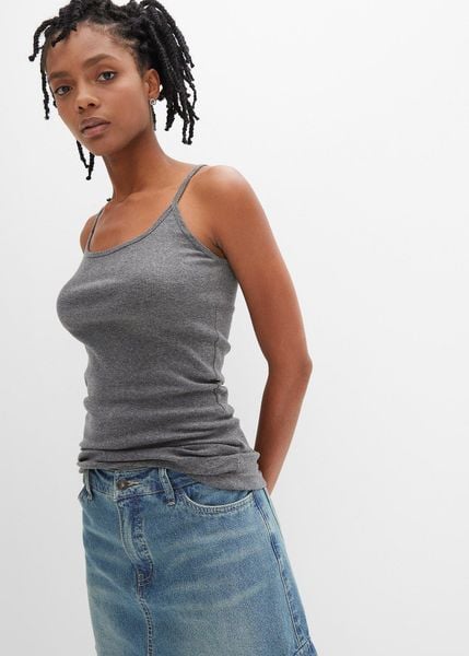 Klasyczne topy na wąskich ramiączkach w kompl. 2-częściowym. Ulubione topy typu basic, z wygodnego materiału w prążek. Na wąskich ramiączkach. Dł. w rozm. 40/42 ok. 70 cm.