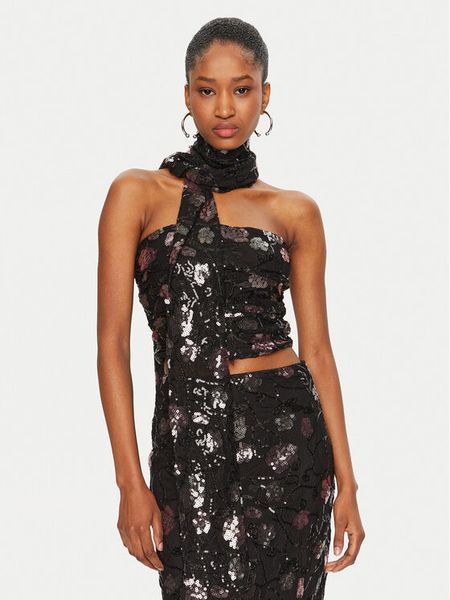 ROTATE Bluzka 113311100 Czarny Slim Fit