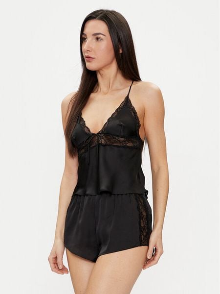 JUICY COUTURE Czarna satynowa damska koszula piżamowa w logo, Rozmiar XS
