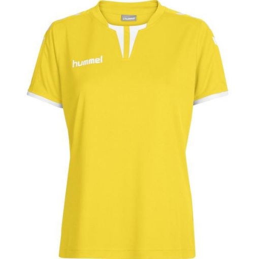 Koszulka sportowa z krótkim rękawem damska Hummel Core Womens SS Jersey Ocena: Tags: Sporty Piłka nożna Odzież piłkarska Koszulki piłkarskie Kolor: Żółty Rozmiar: 38 S Przeznaczenie: female Marka: HUMMEL