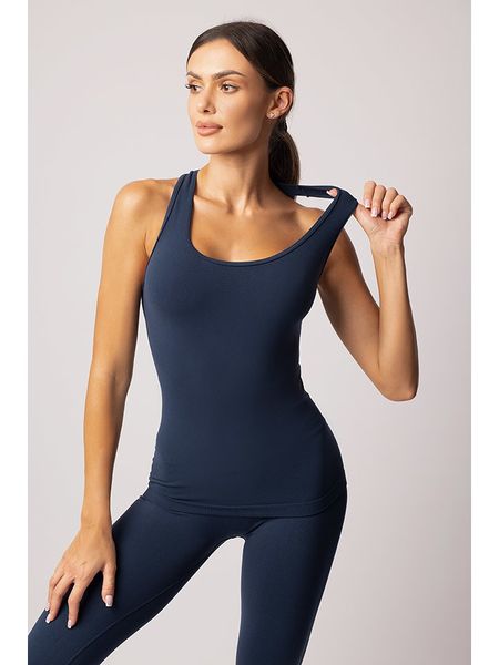 – szybkoschnący materiał- wykonanie: bezszwowe- ramiączka: sportowy krój pleców- dekolt: okrągły- krój: wąski- look: jednokolorowyUwaga: Tylko opisany produkt wchodzi w skład przesyłki.