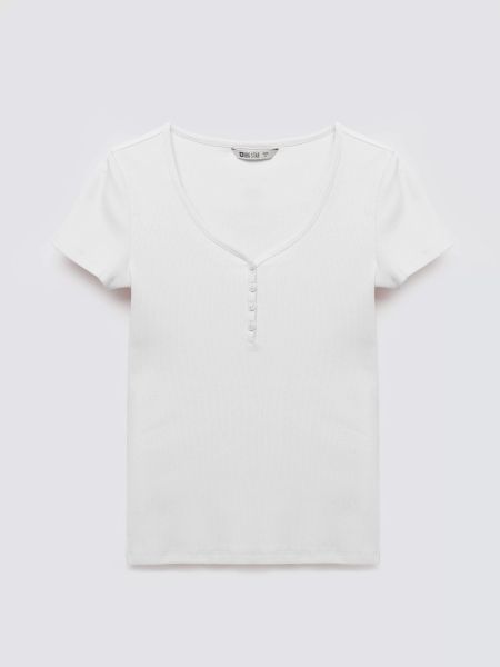 Biała prążkowana koszulka to absolutny niezbędnik w szafie każdej kobiety, która ceni styl basic w wersji Premium. Dopasowana forma w połączeniu z prążkowaną fakturą dzianiny tworzy efektowny look, a naturalna biel odświeża każdą stylizację. Zastosowanie rzędu małych guzików przy głębokim dekolcie nadaje koszulce unikalnego sznytu i przyciąga wzrok do górnych partii sylwetki. Przyjemna w dotyku […]