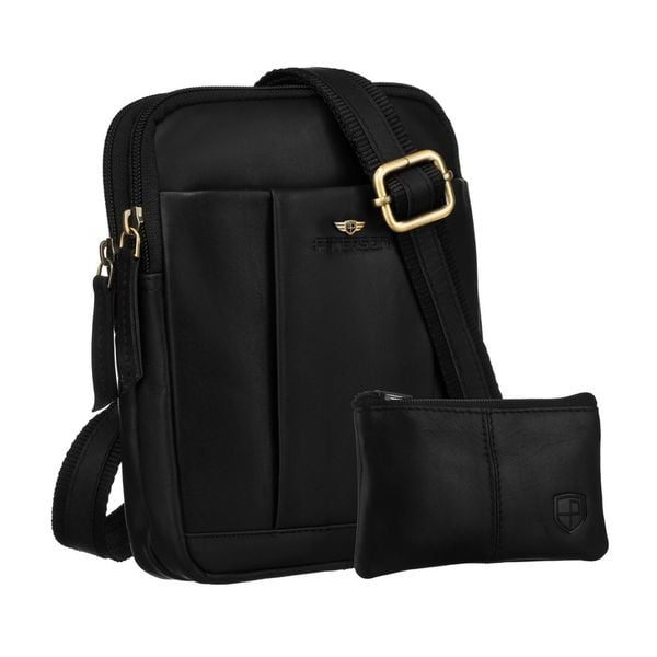 Elegancka męska torebka Peterson z wysokiej jakości skóry naturalnej w czarnym kolorze. Wyposażona w regulowany pasek. Wnętrze zamykane bezpiecznym suwakiem zawiera praktyczne kieszonki. W zestawie etui na klucze.