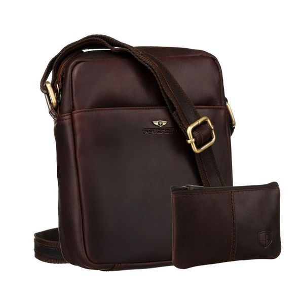 Brązowa torba-listonoszka ze skóry naturalnej z etui na klucze w zestawie PTN 720E-OPU Peterson