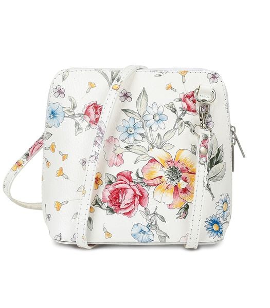 KolorywielokolorowyKolory – wielokolorowyMateriałSkóra naturalnaWielkośćMała, nie mieszcząca A4FasonListonoszkaŚcianki torbySztywneKolor okućSrebrnyZapięcieDwubiegowy zamek błyskawicznyKlapaNieLiczba kieszeni2Kieszenie zewnętrzne1 mała, z tyłu, zasuwanaKieszenie wewnętrzne1 zasuwana, która jest przegrodą dzielącą komorę na półDnoUsztywnioneLiczba komór1PasekSkórzany, długi, doczepiany o długości 120cmDługość paska (cm)120Wysokość (cm)17Długość (cm)17Szerokość (cm)8PodszewkaTakWzór dominującyKwiatyUkład/OrientacjaPionMieści laptopa 15,6″Nie
