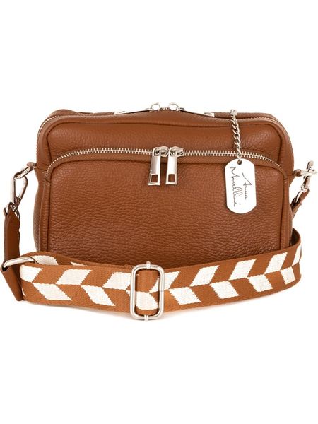 – materiał: skóra bydlęca- długi pasek przez ramię: regulowany, odpinany- zapięcie: suwak- kieszenie zewnętrzne: tak, na zamek- kieszenie wewnętrzne: 1 kieszeń otwarta- detale: zawieszka- tekstylna podszewka: tak- wyprodukowano we Włoszech