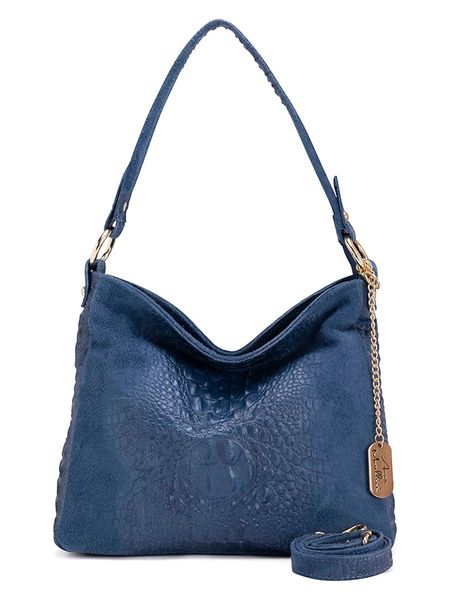 – materiał: skóra bydlęca- powierzchnia: o fakturze krokodylej skóry – krótki pasek na ramię: 1- długi pasek przez ramię: odpinany- zapięcie: suwak- kieszenie zewnętrzne: tak, na zamek – kieszenie wewnętrzne: 1 kieszeń na zamek – wewnętrzne detale: komora główna dzielona zasuwaną kieszenią – tekstylna podszewka: tak – wyprodukowano we Włoszech