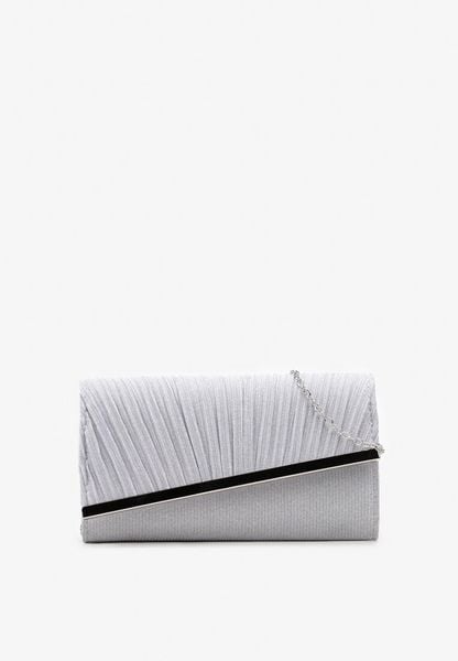 Srebrna Torebka Kopertowa Ozdobiona Metaliczną Nicią z Łańcuszkiem Ceriora